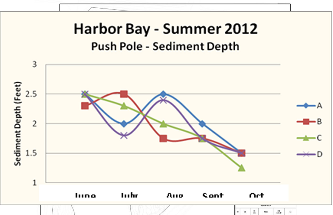 使用奧科?太陽能循環(huán)復(fù)氧設(shè)備4個(gè)月后,對(duì)Madison湖的底泥進(jìn)行測(cè)量。測(cè)量結(jié)果表明,在奧科?太陽能循環(huán)復(fù)氧設(shè)備使用后,底泥深度明顯變淺。2012年6月-10月之間,測(cè)量點(diǎn)底泥消減量平均為30厘米。