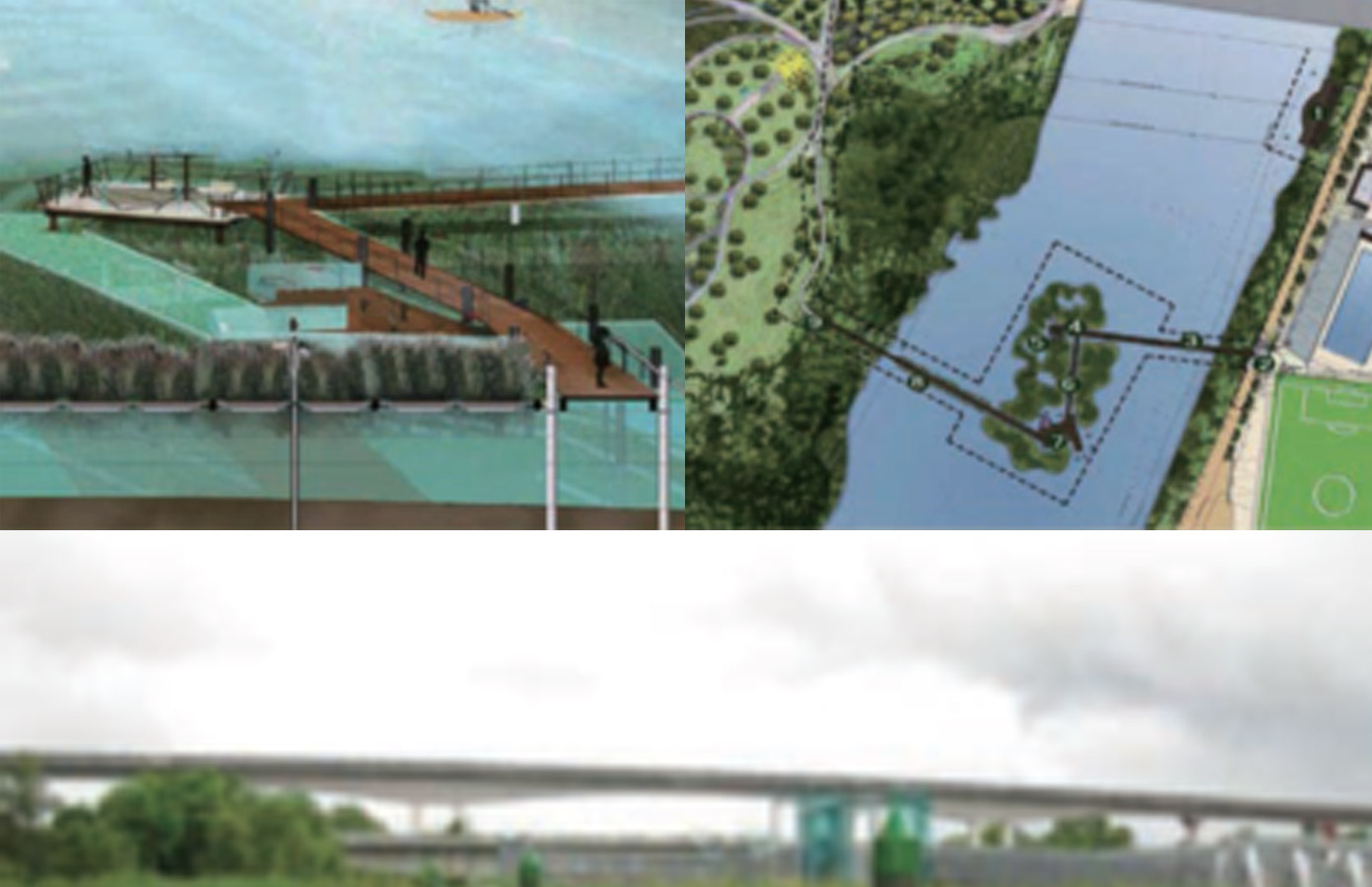 這是一個(gè)完全浮在水面的島嶼,大約有半個(gè)標(biāo)準(zhǔn)足球場(chǎng)大小,一側(cè)堤岸通過固定的人行橋聯(lián)系,另一側(cè)提案通過浮動(dòng)的木板走道連接。固定高度的人行橋保證有足夠的凈高開展水上活動(dòng),而緊貼水面的浮動(dòng)木板走道則允許人們真正近距離感受水體。整個(gè)項(xiàng)目還創(chuàng)造了一個(gè)令人興奮的結(jié)果,為公眾提供了一個(gè)全新的親水休閑空間和新的水上休閑活動(dòng),并大大加強(qiáng)了水庫(kù)兩側(cè)居住社區(qū)的聯(lián)系。