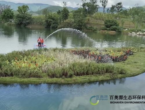 東陽(yáng)市江濱景觀...應(yīng)用領(lǐng)域:人工濕地生物曝氣塘工藝 產(chǎn)品技術(shù):浮動(dòng)濕地