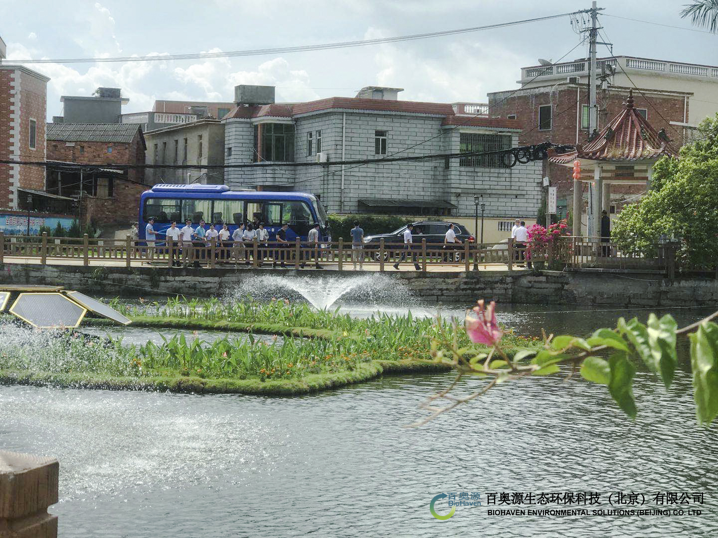 漳州角美鎮(zhèn)埔尾村祠堂大塘為白石林先生祠、進士牌及傳統(tǒng)民居等古建筑環(huán)繞,是埔尾村重要的水景觀節(jié)點,更是漳州臺商投資區(qū)廉政教育基地及埔尾村鄉(xiāng)賢鄉(xiāng)訓(xùn)館的主要配套景點。埔尾村扎實推進鄉(xiāng)村振興戰(zhàn)略,在實施農(nóng)村污水收集處理工程的基礎(chǔ)上,結(jié)合截污納管、補水措施等工程,創(chuàng)新采用的浮動凈水廠技術(shù),以生態(tài)手段同步實現(xiàn)水質(zhì)改善與景觀提升,打造大塘優(yōu)美水環(huán)境的目標(biāo),并與埔尾村古建筑景觀互映互襯,彰顯千年古村落的獨有生態(tài)之美。