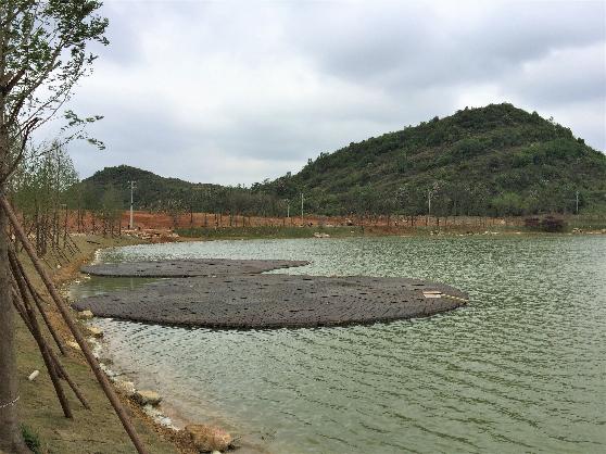 貴安新區(qū)兩湖一河項(xiàng)目浮動(dòng)濕地分布于北二區(qū)和星月湖二期C區(qū),首件浮動(dòng)濕地位于月亮湖公園二期北二區(qū),由上下兩部分組成,上部結(jié)構(gòu)采用復(fù)合纖維材料具有載體材質(zhì)的高效能填充物組裝而成,浮動(dòng)濕地載體上面布置植物種植孔,孔徑9cm;孔深10cm;相鄰孔中心間距19cm,空隙中栽種水生植物,可以使空隙中的水生植物穿透浮動(dòng)濕地直達(dá)到水體,并在載體內(nèi)部橫向及縱向植根。浮動(dòng)濕地是項(xiàng)目一個(gè)重要的施工環(huán)節(jié),屬于新型環(huán)保設(shè)施,零排放、零污染、零消耗,利用水生植物自然凈化水質(zhì)。